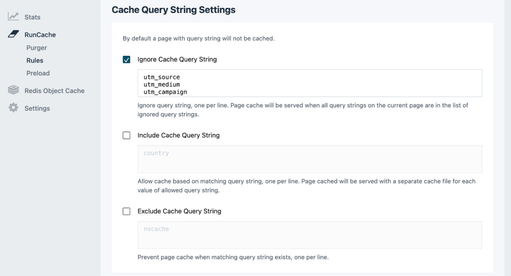 RunCloud allows you to control exactly how the server handles these dynamic parameters through its advanced NGINX caching rules:
