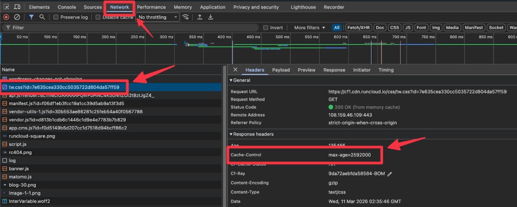 - Look for a sub-tab called Headers and scroll down to Response Headers. If you see Cache-Control or Expires, your site is already configured.