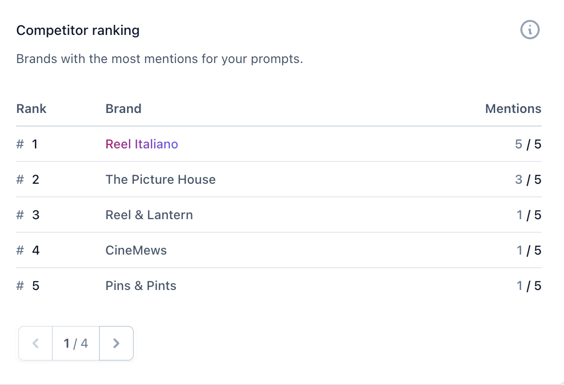 See how you stack up against other brands mentioned in your prompts